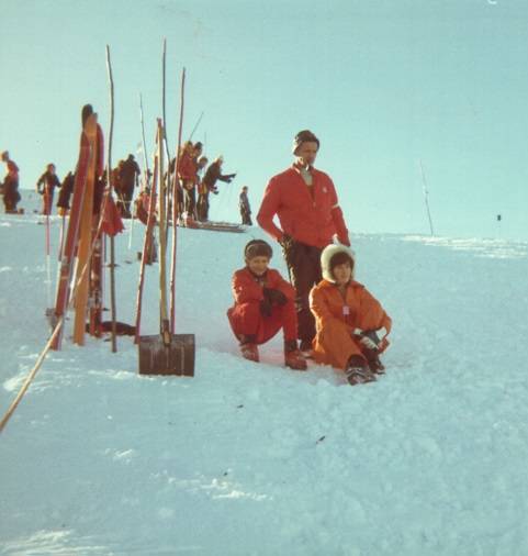 Peo und Hans an einem Skirennen mit Bernhard Russi und...
